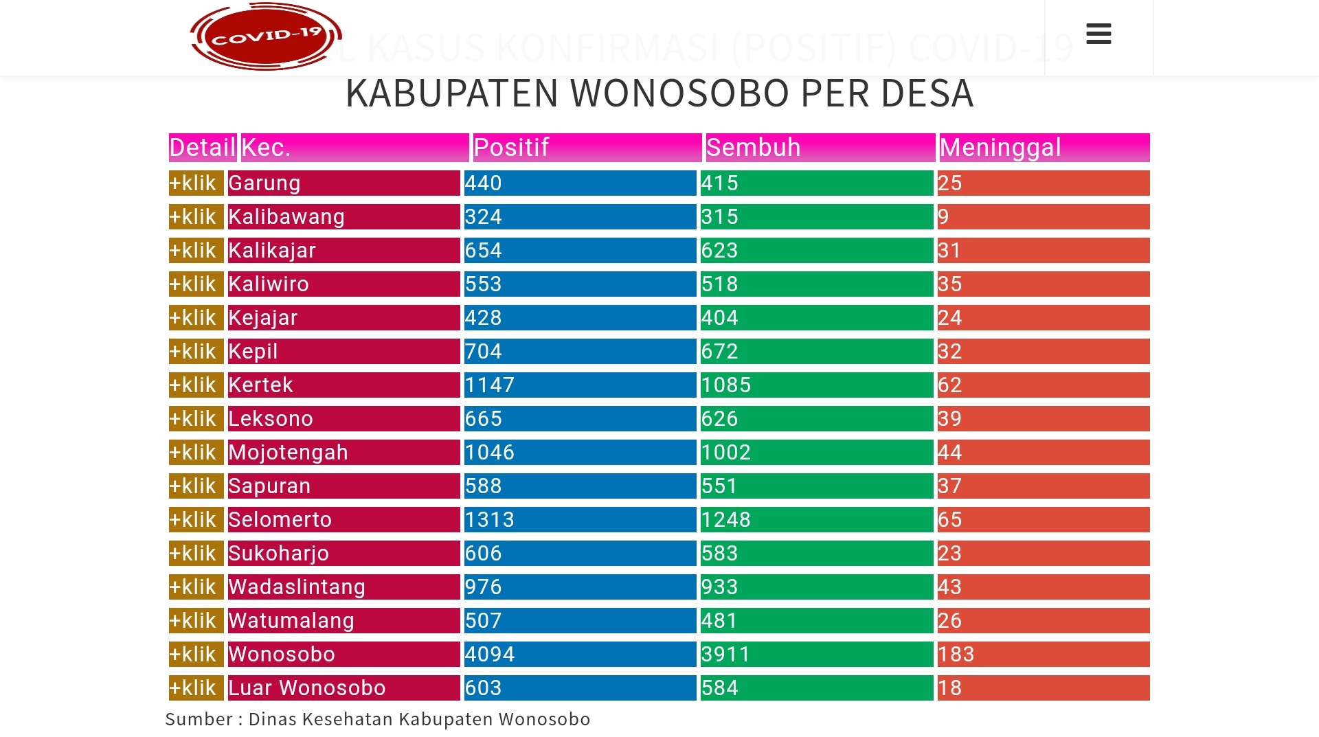 Dari total 14,648 pasien positif corona di Kabupaten Wonosobo, berikut rincian per kecamatan :