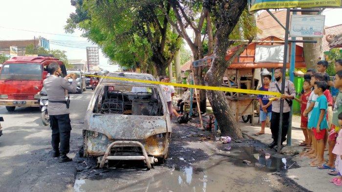 TRIBUNJATENG.COM, KARANGANYAR - Mobil Espass milik Wardi (43) hangus terbakar di Jalan Raya Solo-Purwodadi KM 12 tepatnya di Dukuh Banjarejo Desa Tuban Kecamatan Gondangrejo Kabupaten Karanganyar pada Senin (27/12/2021) pukul 09.30.