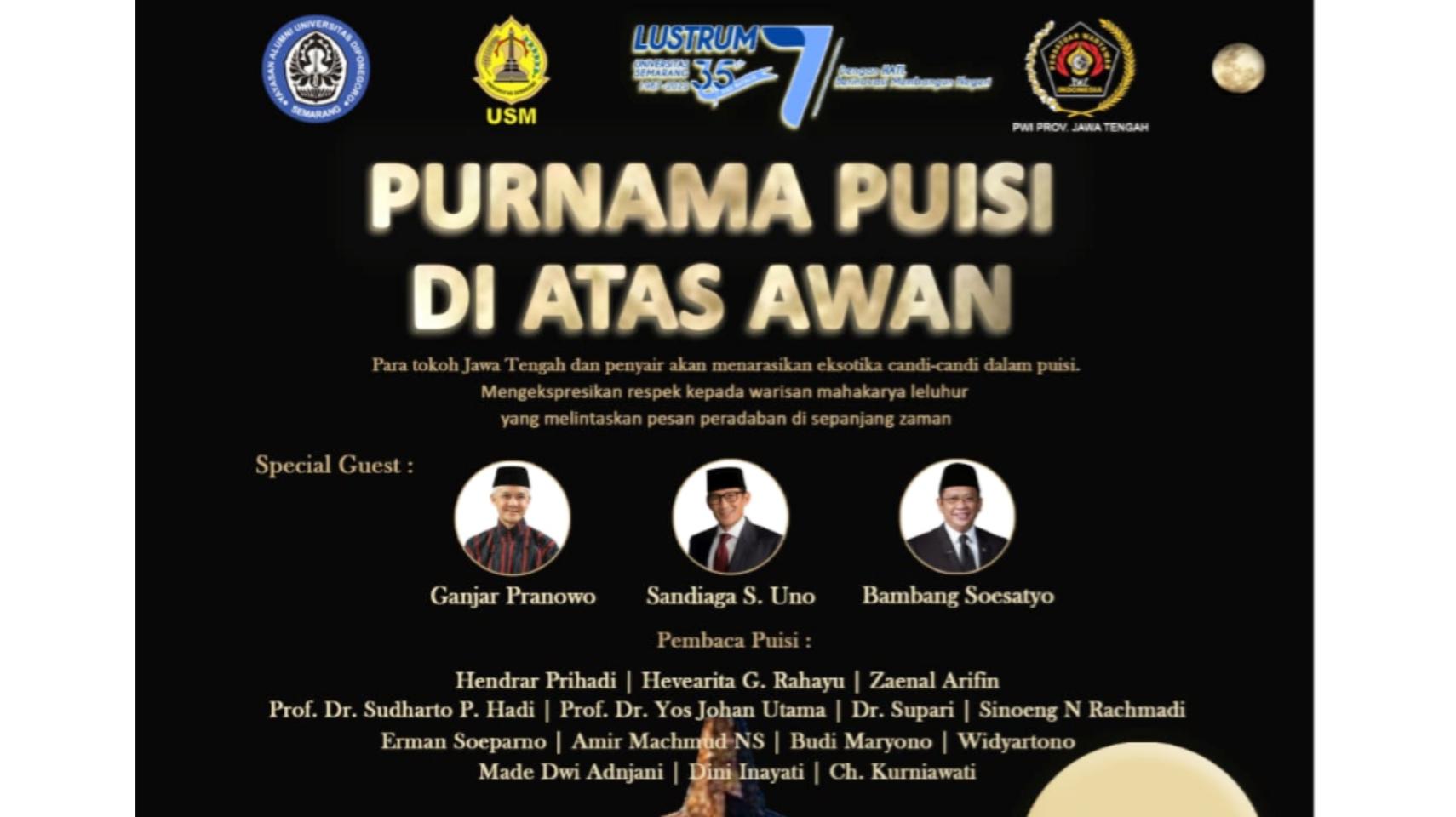 USM bersama Persatuan Wartawan Indonesia (PWI) Jawa Tengah (JATENG) menggelar malam kebudayaan bertajuk "Purnama Puisi Di Atas Awan".