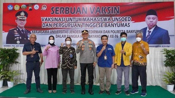 TRIBUNJATENG.COM - Kepolisian Resor Kota (Polresta) Banyumas bekerja sama dengan Universitas Jenderal Soedirman (UNSOED) Purwokerto menggelar vaksinasi booster bagi mahasiswa se-Banyumas Raya dan masyarakat umum.