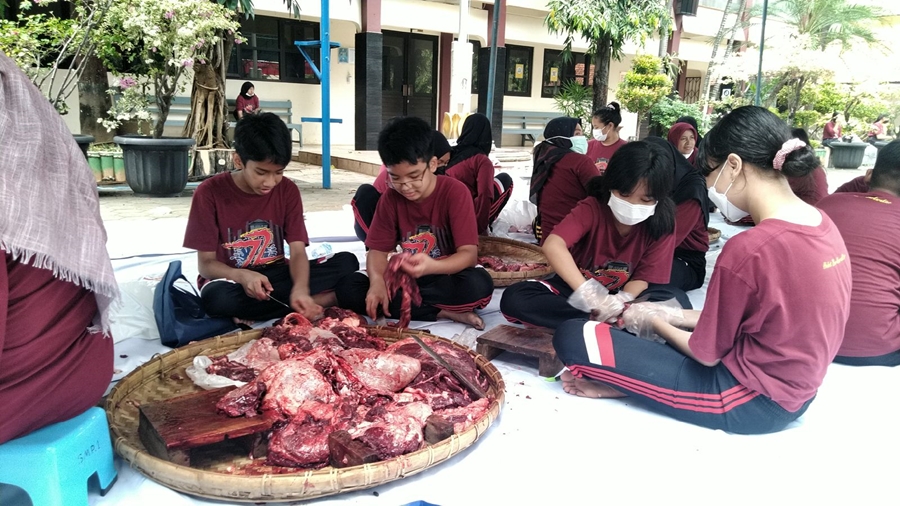 Terpisah, Kepala SMP Negeri 1 Kudus, Ahadi Setiawan menjelaskan, pemotongan hewan kurban dilaksanakan pada Senin (11/7/2022) agar ada siswa yang terlibat.