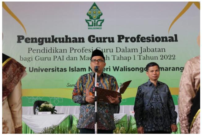 Sementara itu, Rektor UIN Walisongo, Prof. Dr. Imam Taufiq, M.Ag., mengucapkan selamat kepada para guru profesional yang telah dikukuhkan.