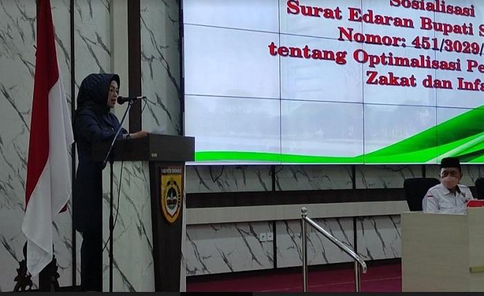 Bupati Sukoharjo Etik Suryani membuka sosialisasi Surat Edaran Bupati Sukoharjo tentang pengumpulan zakat dan infak dari Aparatur Sipil Negara (ASN)