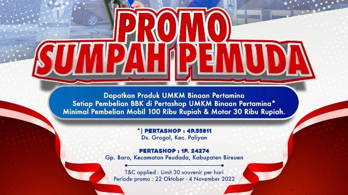 TRIBUNJATENG.COM, GUNUNG KIDUL, 4 November 2022 - Dalam rangka memperingati Hari Sumpah Pemuda tanggal 28 Oktober 2022, Pertamina menghadirkan Promo Sumpah Pemuda pada pembelian bahan bakar minuak (BBM) di Pertashop yang merupakan mitra binaan Pertamina pada Program Pendanaan Usaha Mikro Kecil (PPUMK).