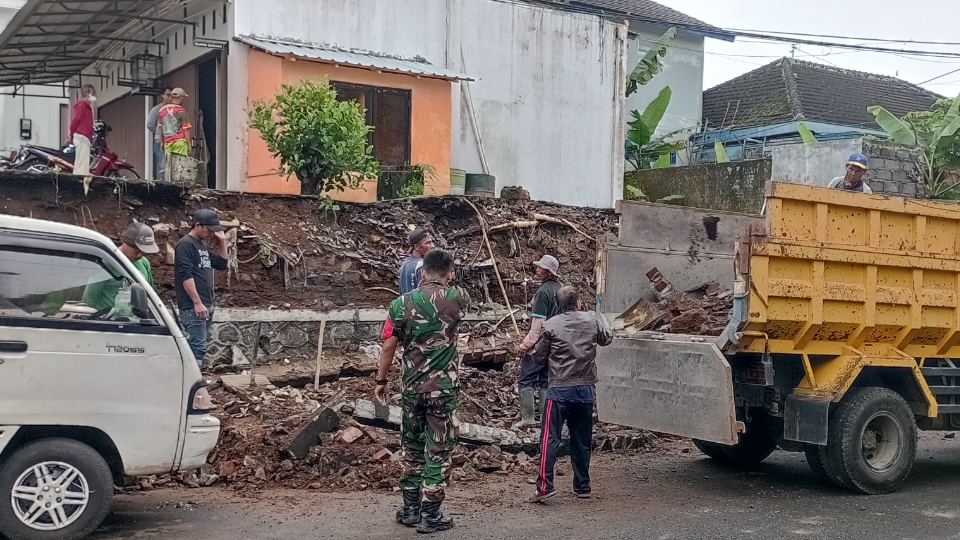 Dinding roboh diakibatkan hujan lebat disertai angin yang mengguyur Wonosobo sejak petang hingga malam hari.