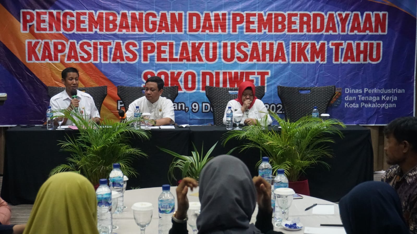 TRIBUNJATENG.COM, PEKALONGAN - Sebagai mendukung upaya pengrajin yang bergelut di Industri Kecil Menengah (IKM), Dinas Perindustrian dan Tenaga Kerja Kota Pekalongan mengundang para pengrajin tahu Sokoduwet, Kecamatan Pekalongan Timur dalam kegiatan pengembangan dan pemberdayaan kapasitas pelaku usaha IKM tahu Sokoduwet, di Hotel Horison Pekalongan.