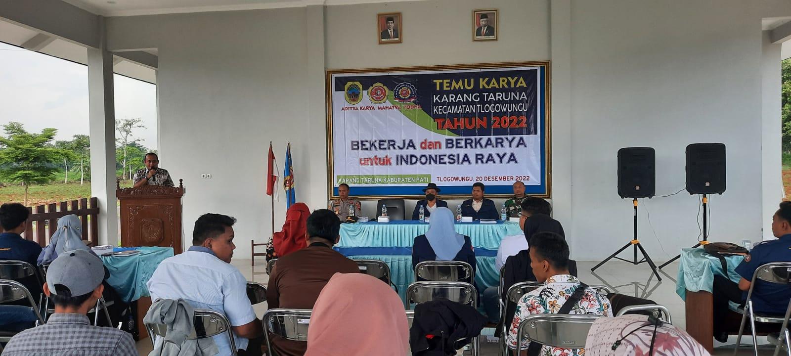 TRIBUNMURIA.COM, PATI - Karang Taruna Kecamatan Tlogowungu, Kabupaten Pati, menggelar acara Temu Karya di Pendopo Kantor Kecamatan Tlogowungu, Selasa (20/12/2022).