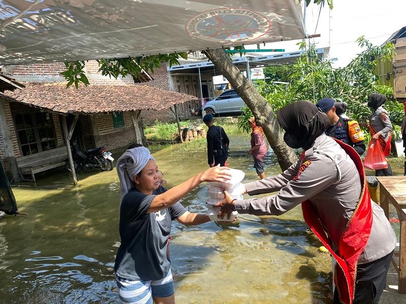 Polresta Pati menerjunkan puluhan personel Polwan dan Brimob dalam penanganan banjir.