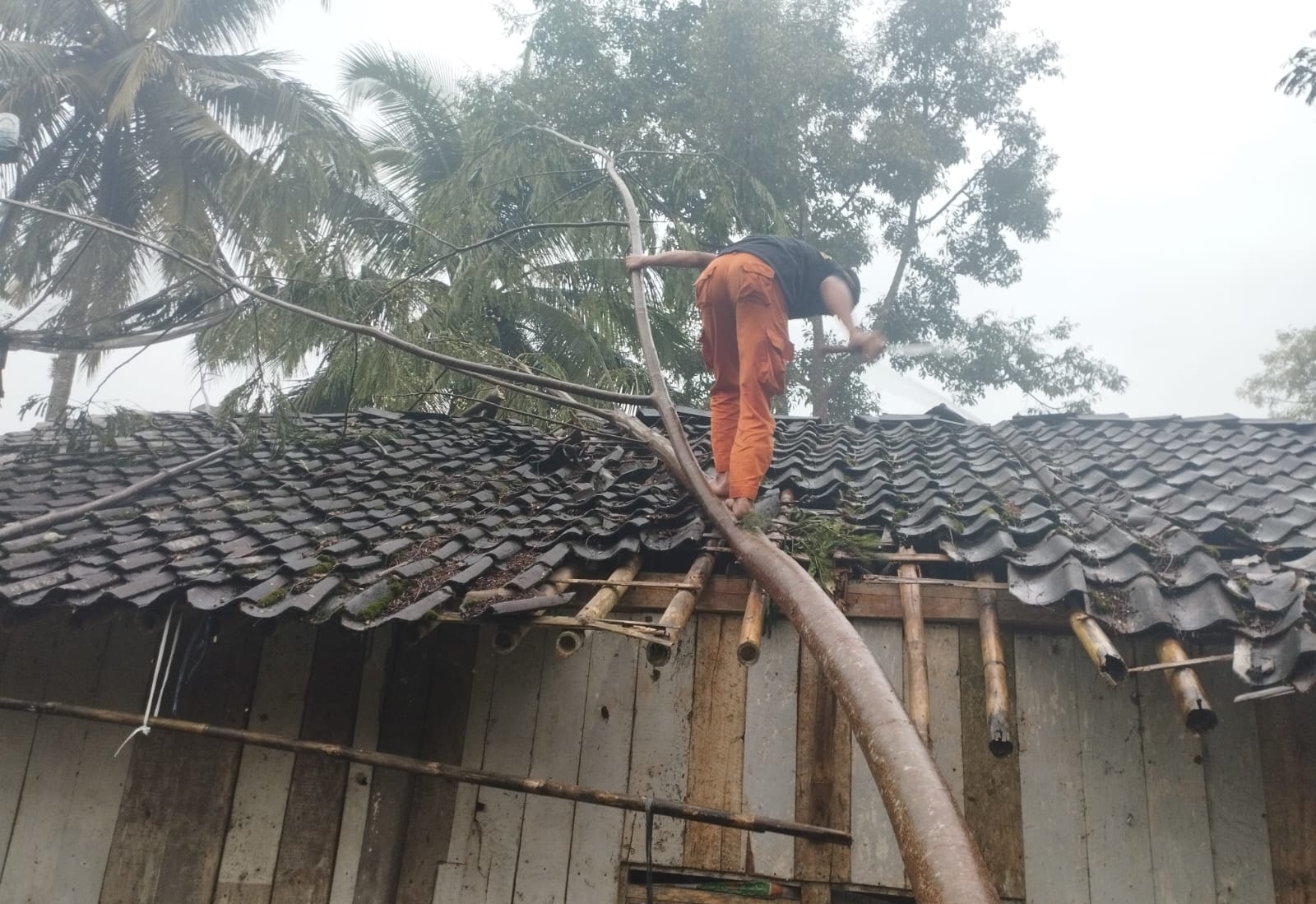 Akibatnya pohon tumbang menimpa satu rumah warga dan menutup akses jalan utama di Dusun Krungsung, Desa Burat, Kecamatan Kepil.