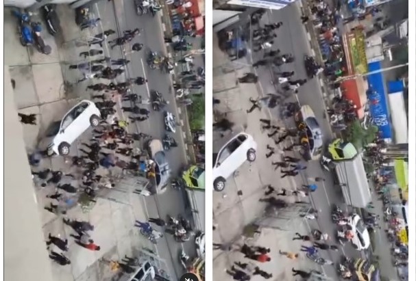 Dari keterangan pengunggah, dituliskan jika massa dari sebuah ormas ini marah dan tak terima mobil salah satu anggota ditarik paksa oleh debtcollector.