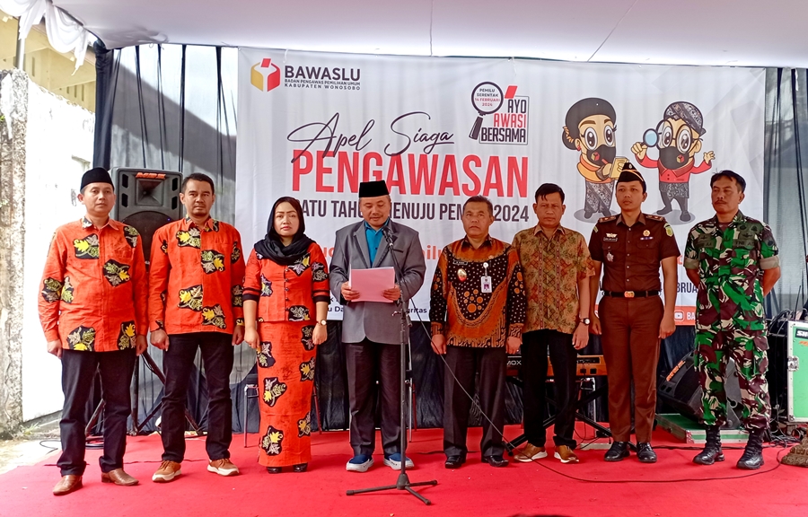 TRIBUNJATENG.COM, WONOSOBO - Bawaslu Kabupaten Wonosobo menggelar Apel Siaga Pengawasan Satu Tahun Menuju Pemilu 2024, Selasa (14/2/2023).