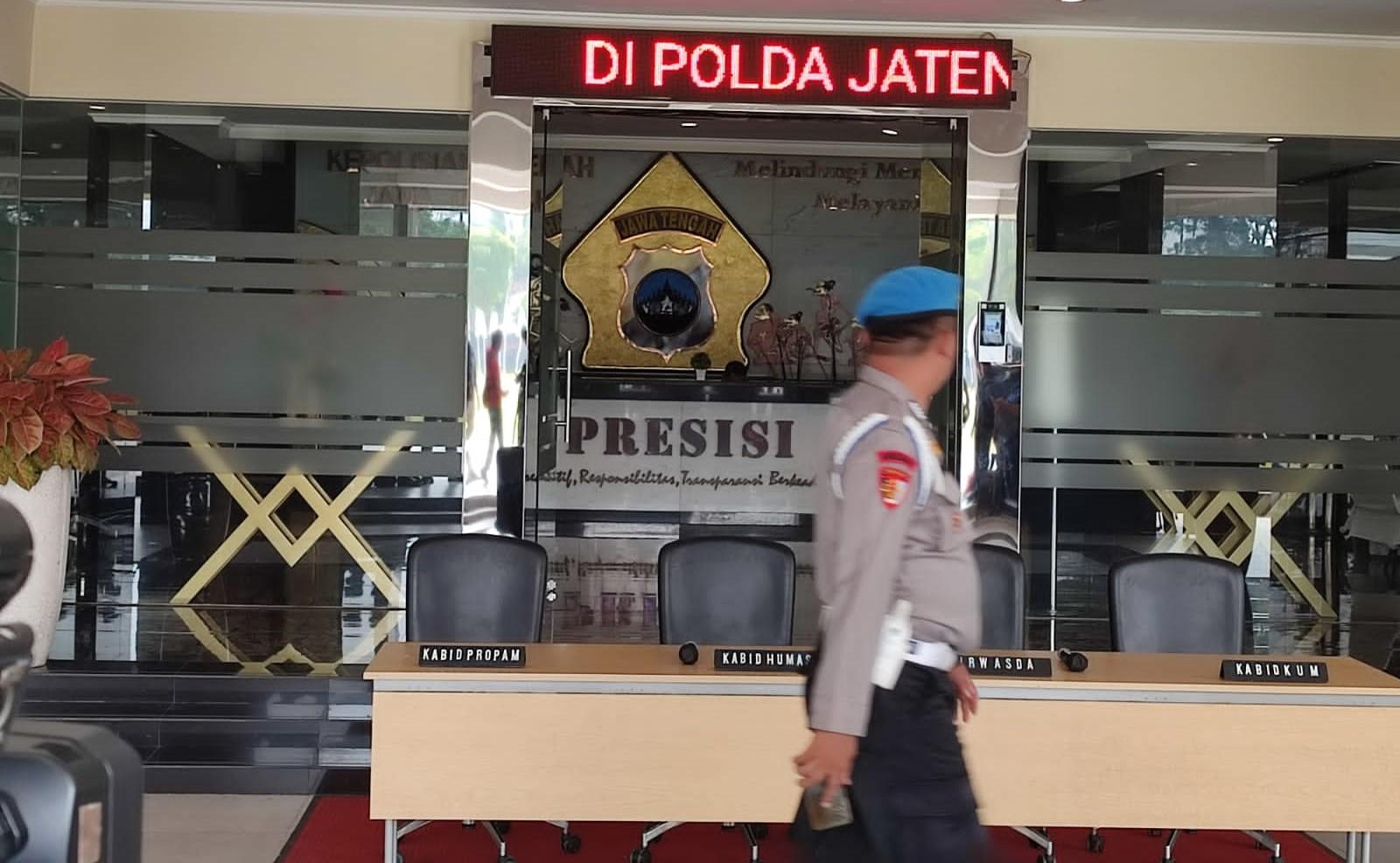 Suasana kantor Polda Jateng, Senin (20/3/2023) sesaaat setelah tujuh anggota Polda Jateng terlibat kasus suap Bintara Polri tahun 2022 diberi sanksi pemberhentian tidak dengan hormat (PTDH) alias dipecat.