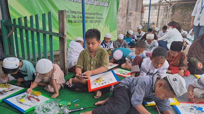 Kegiatan mendongeng bersama anak-anak kurang mampu yang dilaksanakan di Panti Asuhan Kyai Ageng Al Fatah yang beralamat di Jl. Plamongan Sari Raya.