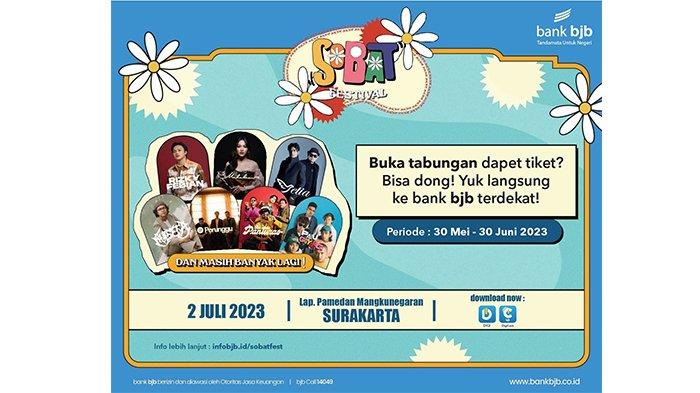 TRIBUNJATENG.COM, SURAKARTA - Ingin datang ke Sobat Festival 2023 di Surakarta? Tak perlu war tiket, Anda hanya perlu menabung di bank bjb untuk mendapat tiket nonton festival musik yang diselenggarakan pada Juli 2023 nanti.