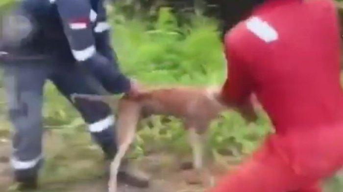 Dalam video berdurasi 29 detik itu, tampak dua orang itu mengayunkan anjing yang ditangkapnya lalu dilempar ke arah buaya yang berada di Sungai Sebaung.