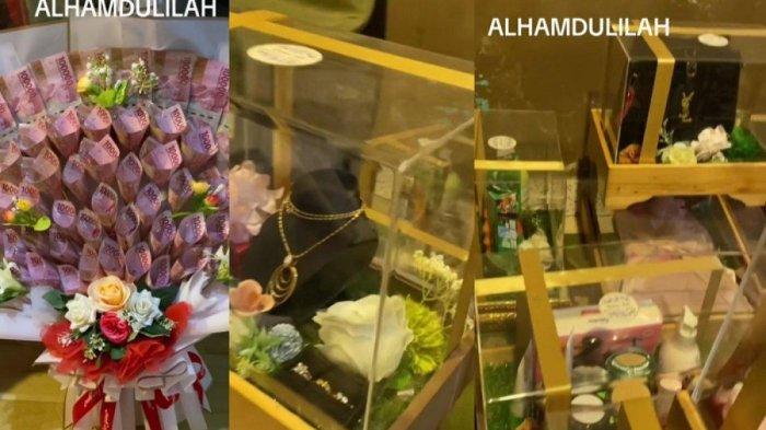 Bahkan mahar yang diberikan mulai dari perhiasan emas, cincin berlian, dan buket uang pecahan Rp 100 ribu.