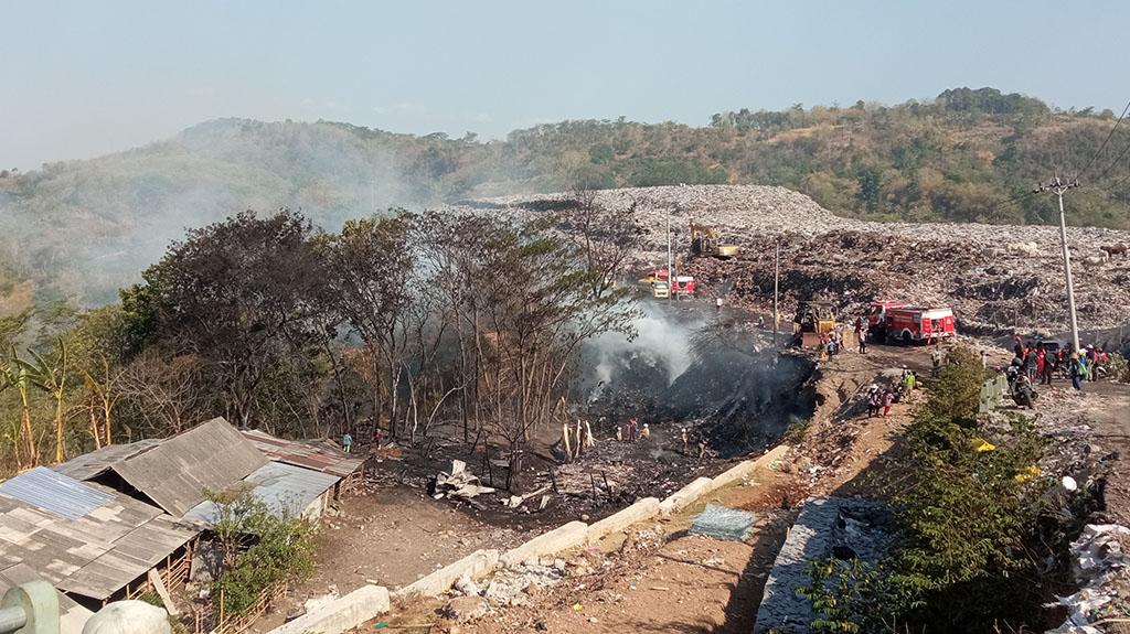 Kebakaran kembali melanda TPA Jatibarang Semarang. Kali ini, kebakaran terjadi di area kandang sapi yang berada di utara.