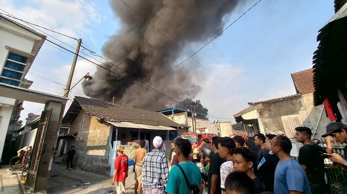 TRIBUNJATENG.COM, SUKOHARJO - Kebakaran melanda sebuah gudang kain sebuah pabrik konveksi di Kaliwingko, Madegendo, Grogol, Sukoharjo pada Senin (16/10/2023).