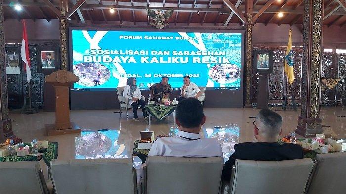 TRIBUNJATENG.COM,TEGAL- DPUPR Kota Tegal menggelar 'Sosialisasi dan Sarasehan Budaya Kaliku Resik' bersama Forum Sahabat Sungai di Pendopo Ki Gede Sebayu Balai Kota Tegal, Rabu (25/10/2023).