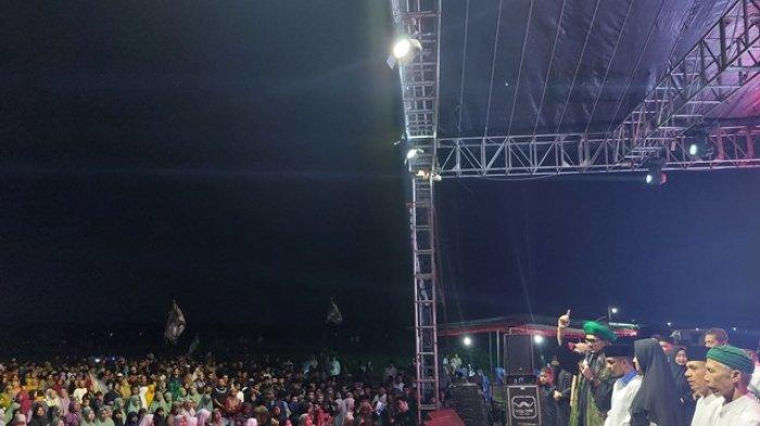 TRIBUNJATENG.COM, KARANGANYAR - Ribuan orang mengikuti shalawat kebangsaan menjemput ganjaran bersama Gus Ali Gondrong di Lapangan Kanilan Desa Kragan Kecamatan Gondangrejo Kabupaten Karanganyar pada Sabtu (28/10/2023) malam.