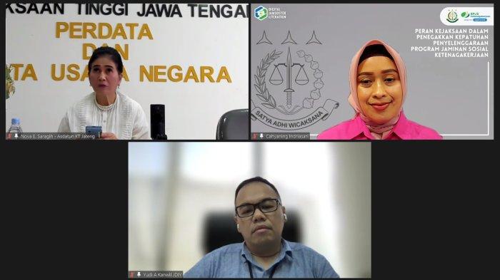 TRIBUNJATENG.COM, SEMARANG - BPJS Ketenagakerjaan (BPJAMSOSTEK) Kantor Wilayah Jawa Tengah dan DIY kembali menggelar Digital Jamsostek Literation (Dijamin), yang hadir setiap hari Rabu. Kali ini Dijamin mengusung tema "Peran Kejaksaan dalam Penegakan Kepatuhan Penyelenggaraan Program Jaminan Sosial Ketenagakerjaan", bekerjasama dengan Kejaksaan Tinggi Jawa Tengah untuk memberikan edukasi kepada masyarakat, Rabu (1/11/2023).