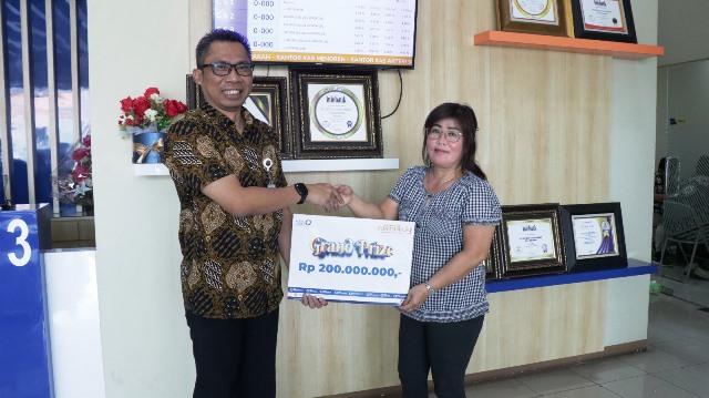 Nasabah Bank Perkreditan Rakyat (BPR) Restu Artha Makmur, Lie Kian mendapatkan hadiah sebesar Rp 200 juta dari program Tabungan Fortuna 2