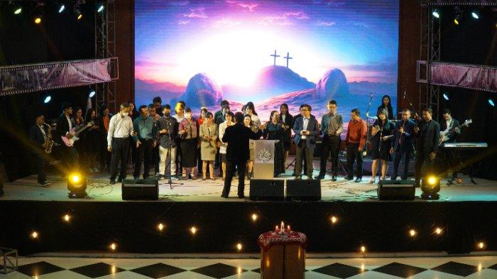 Tampak seluruh civitas academica FH dan FEB yang terdiri dari dosen, tenaga kependidikan (tendik), mahasiswa, alumni hingga dosen purnabakti berhimpun mengikuti Ibadah Syukur yang dipimpin oleh Pdt. Dr. Ferry Nahusona, M.Si.