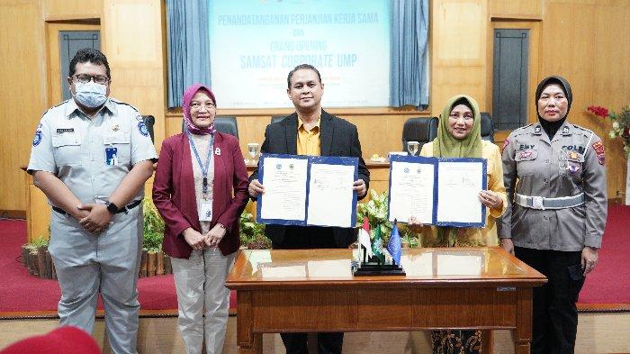 TRIBUNJATENG.COM - Penandatanganan Perjanjian Kerja Sama SAMSAT Corporate Universitas Muhammadiyah Purwokerto (UMP), antara pihak UMP dengan Unit Pengelola Pendapatan Daerah (UPPD) Kabupaten Banyumas, Kamis (28/12/2023).