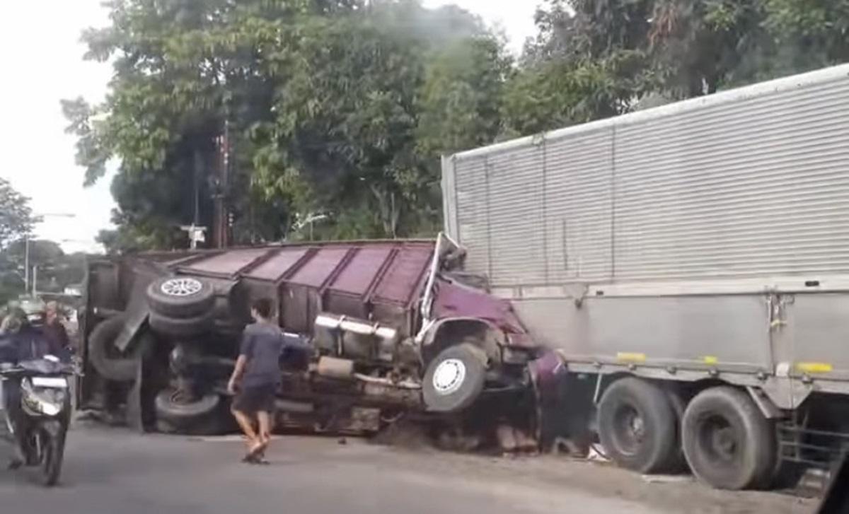 Kecelakaan tersebut melibatkan dua truk dan satu mobil.