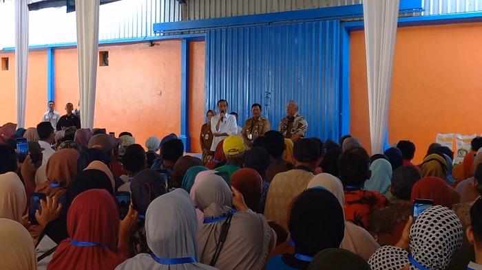 TRIBUNJATENG.COM, SUKOHARJO - Presiden Jokowi kembali menyalurkan bantuan pangan cadangan beras pemerintah di Gudang Bulog Telukan Sukoharjo, Kamis (1/2/2024).
