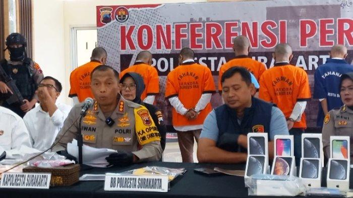 Kapolresta Solo, Kombes Pol Iwan Saktiadi mengungkapkan, tersangka melakukan pencurian sebanyak 56 handphone dengan merek iphone.