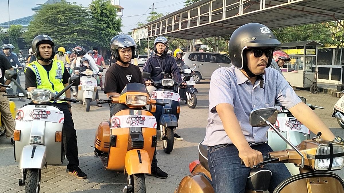 Ratusan Pecinta Vespa Blora turut meramaikan kegiatan Sengaja Rolling NgabubuRide, Lapangan Kridosono, Blora, Minggu (31/3/2024).