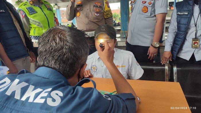 Tak hanya dites urine, para sopir juga diperiksa kesehatannya meliputi cek pupil mata, tensi darah dan lainnya.