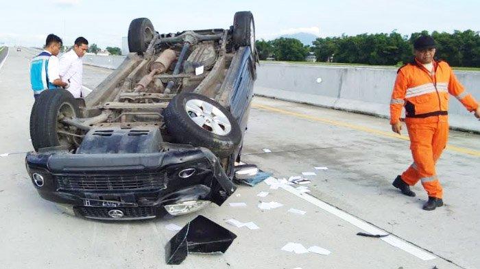 | Kecelakaan Maut di Tol Cipali, Avanza Pecah Ban Lalu Terperosok Ke Parit, 1 Orang Tewas |
