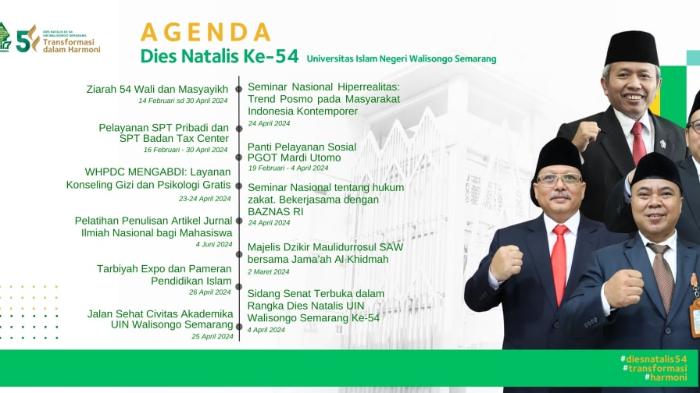Berikut rangkaian kegiatan Dies Natalis ke-54 UIN Walisongo Semarang: