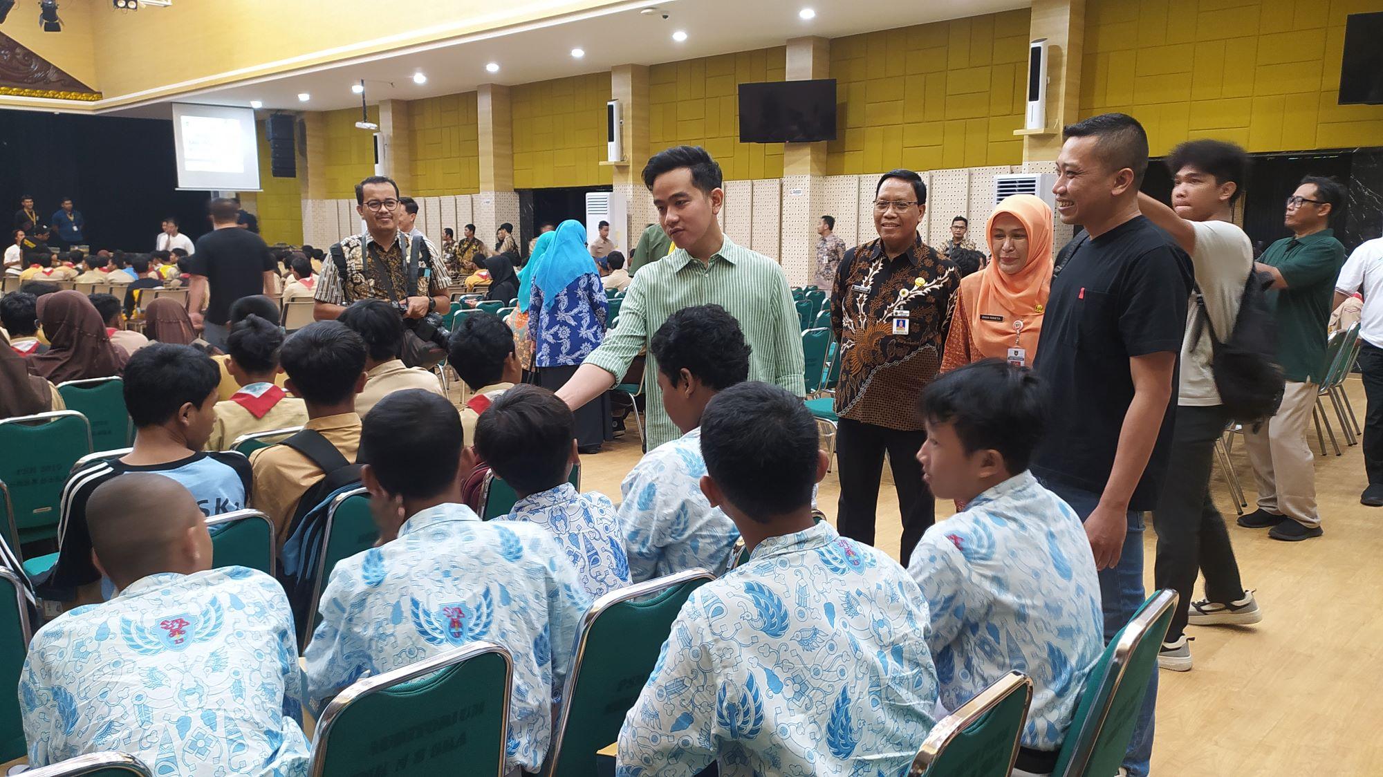 Wali Kota Solo sekaligus Wapres terpilih, Gibran Rakabuming Raka membagikan sepatu gratis untuk siswa dari keluarga