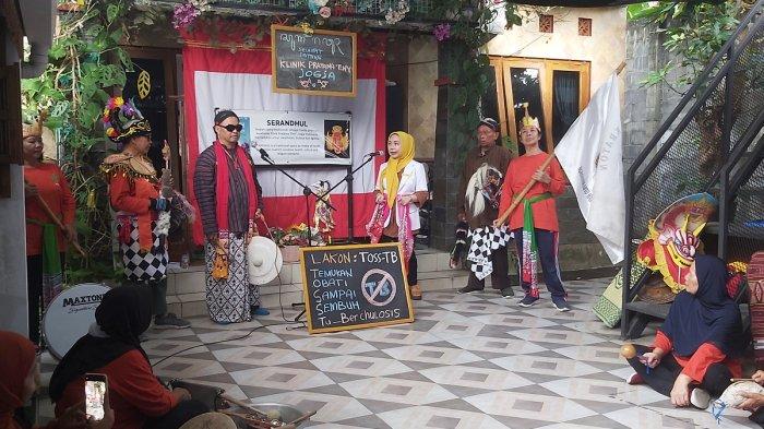 Mereka kemudian menunjukkan kesenian srandul dengan tema TOSS- TB (Temukan Obati Sampai Sembuh Tuberkulosis).