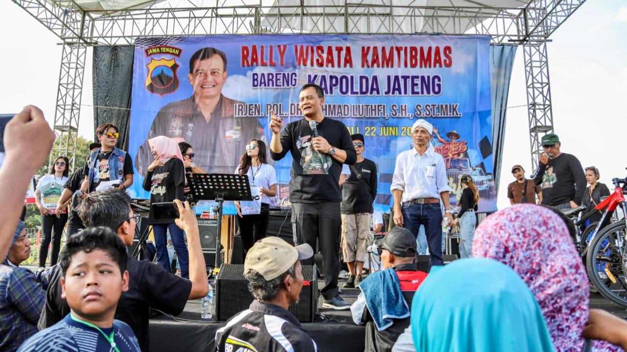 Ajakan ini disampaikan Kapolda Jateng dalam acara Rally Wisata Kamtibmas Bareng Kapolda yang diadakan di Area Honai Waduk Cengklik, Kabupaten Boyolali pada Sabtu (22/6/2024) siang. Kegiatan tersebut turut dihadiri oleh sejumlah Pejabat Utama (PJU) Polda Jateng, Kapolres Ekswil Surakarta dan ratusan peserta Rally Kamtibmas dari berbagai komunitas otomotif.