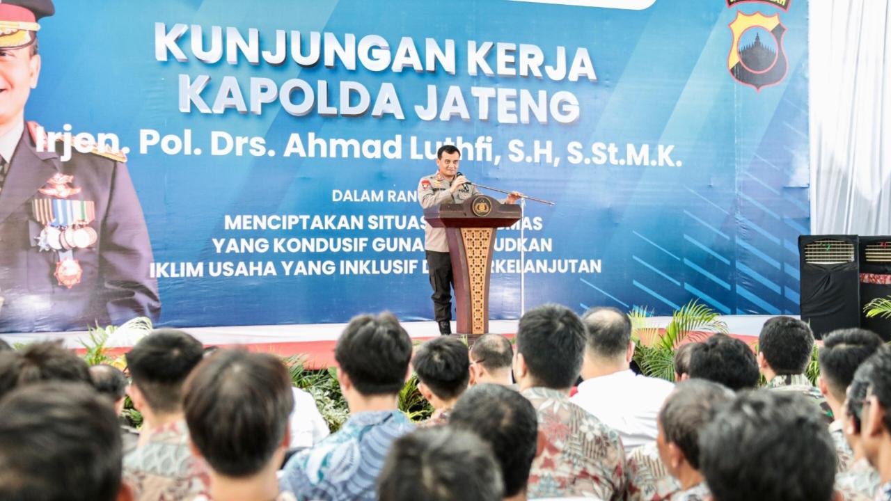 TRIBUNJATENG.COM, KABUPATEN KUDUS| Kapolda Jawa Tengah Irjen Pol Drs. Ahmad Luthfi melaksanakan kunjungan kerja di sejumlah pabrik di wilayah Kudus dalam rangka menciptakan situasi kamtibmas yang kondusif guna mewujudkan iklim usaha yang inklusif dan berkelanjutan, Jumat (28/6/2024).