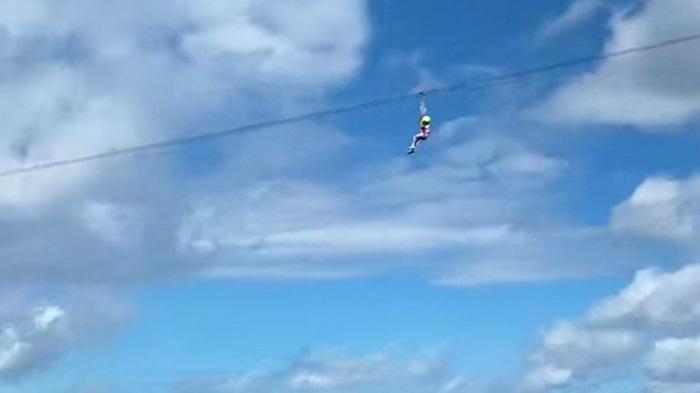 Viral Detik-detik Menegangkan Anak WNA Terjebak di Ketinggian Saat Main Flying Fox di Nusa Penida