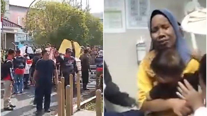 Sambil menggendong anaknya yang masih kecil, wanita tersebut menangis tersedu sambil menciumi jenazah suaminya yang sudah terbujur kaku.