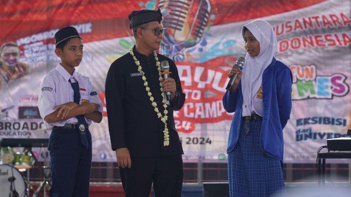 TRIBUNJATENG.COM,TEGAL- Pj Wali Kota Tegal, Dadang Somantri memberikan motivasi kepada pelajar SMP Ihsaniyah Kota Tegal dapam kegiatan Sebayu Goes to School and Campus, Kamis (25/7/2024).