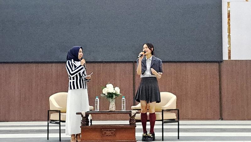 Maudy Ayunda hadir sebagai speaker atau pembicara berbagi pengalamannya saat berkuliah.