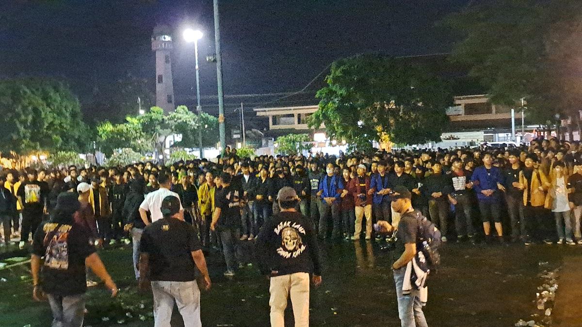 Aksi demo gabungan mahasiswa dilakukan sejak sore hingga malam hari.
