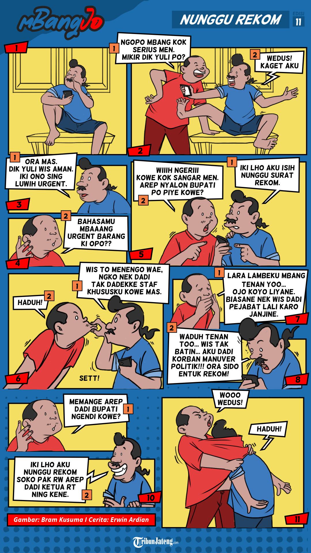 TRIBUNJATENG.COM - Komik Mbangjo edisi 11 dengan judul Nunggu Rekom.