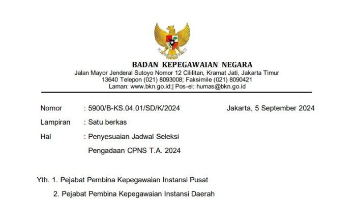 Sebelumnya, seluruh jadwal pendaftaran CPNS 2024 dijadwalkan akan ditutup pada 6 September 2024 pukul 23.59.