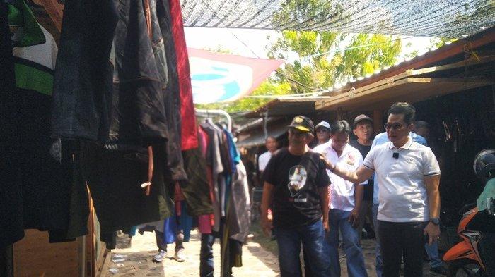 Kedatangan Hartopo - Mawahib didampingi Ketua DPC Partai Gerindra Kudus, Sulistyo Utomo di Pasar Babe untuk mendengarkan keluh-kesah pedagang paska bangunan pasar terbakar Juni lalu.