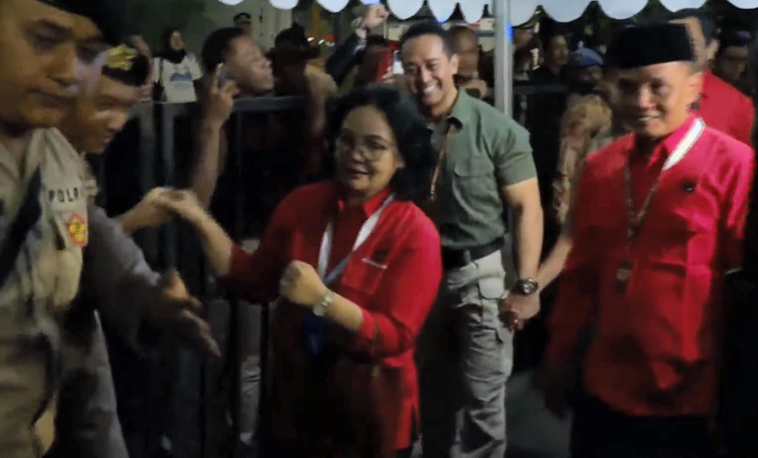 Sejumlah tokoh PDIP juga mengawal kedatangan Andika-Hendi ke Kantor KPU.