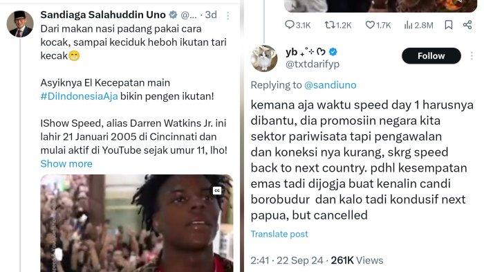 Sebelumnya, pihak Sandiaga Uno dan Kemenparekraf melalui X, tampak terpukau dengan gaya kocak YouTuber yang akrab disapa Speed itu selama berada di Kota Tua Jakarta dan Bali. Sandiaga Uno juga mengagumi betapa Speed sangat menghargai budaya Indonesia.