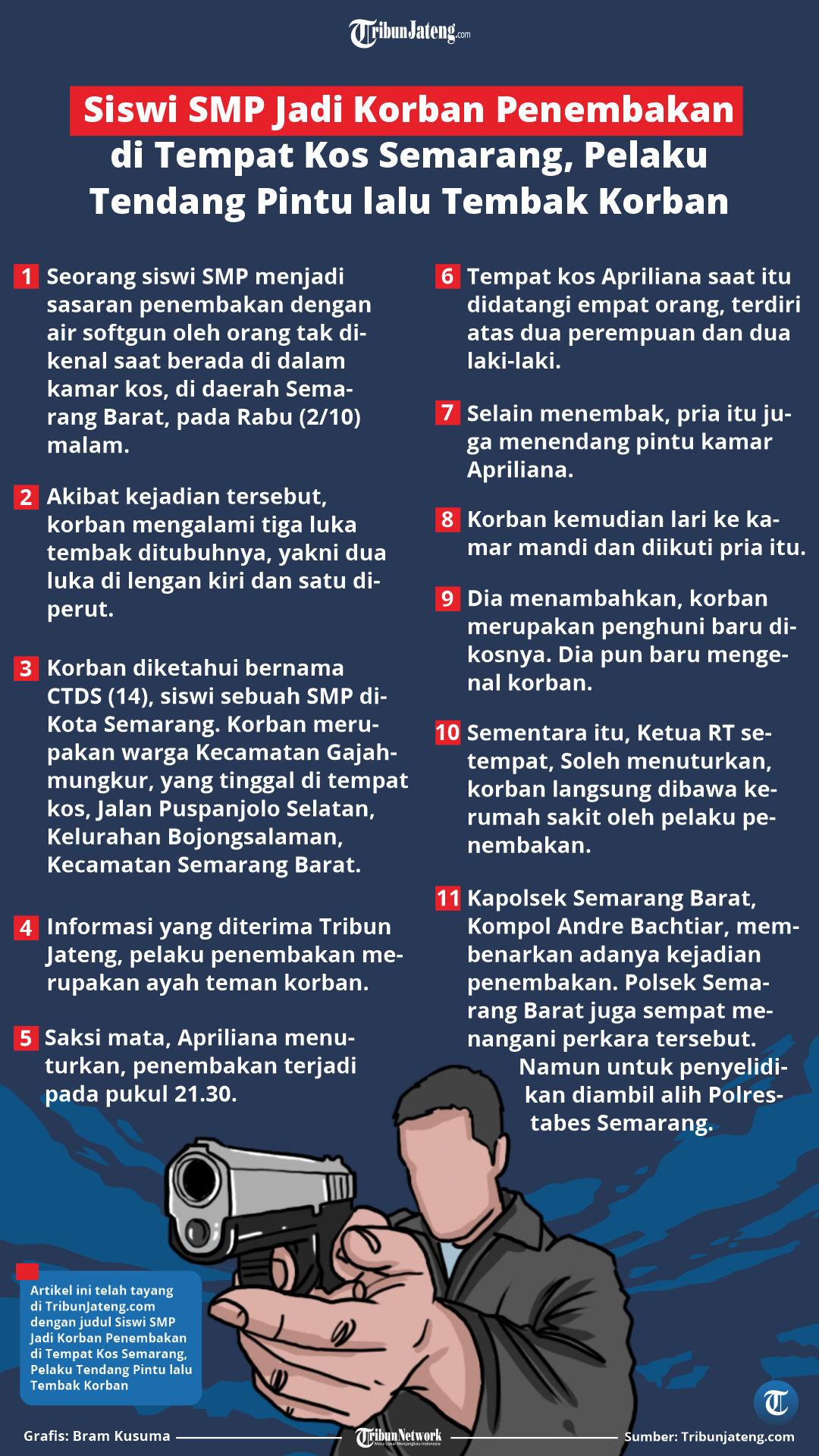 TRIBUNJATENG.COM - INFOGRAFIS Siswi SMP Jadi Korban Penembakan di Tempat Kos Semarang